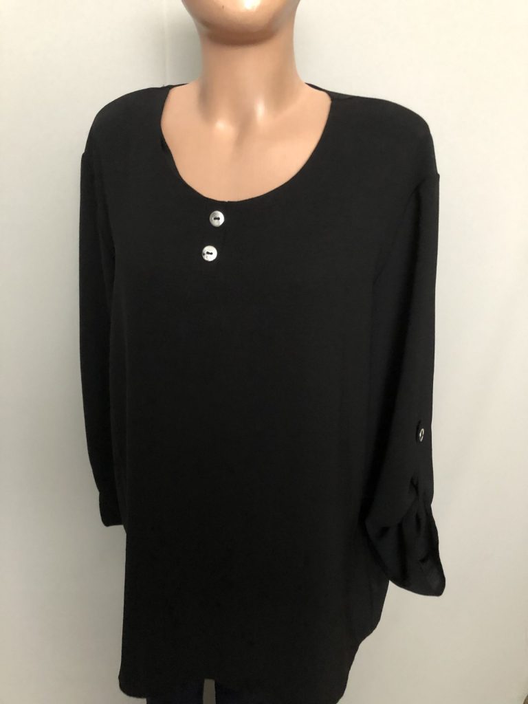 Čierna blúzka s dvoma ozdobnými gombíkmi.