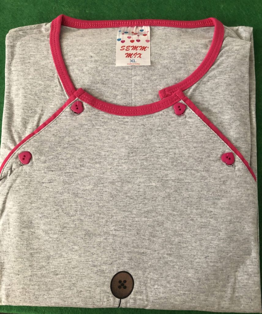 Dámske materské nočné košele môžete nosiť v tehotenstve i ako čerstvé dojčiace mamičky. Materské košieľky sú veľmi praktické, pretože majú v oblasti pŕs zapínanie na gombíky, ktoré urýchlia a uľahčia dojčenie. Výhodou je, že toto zapínanie neškriabe a tým pádom nijako nevadí pri spánku. Košele sú vyrobené z mäkkej a ľahkej bavlny.