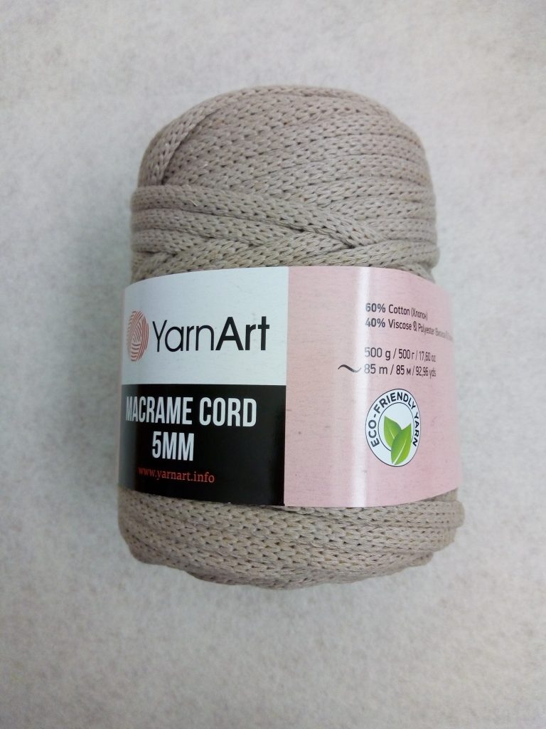 Popredný výrobca značky YarnArt rozšíril ponuku špagátov na pletenie a háčkovanie a prináša novinku Macrame Cord 5 mm. Jednofarebná priadza je zložením bavlny, polyesteru a viskózy. Ide o modernú a veľmi obľúbenú hrubšiu verziu macrame, ktorá je ideálna pre kreatívne háčkovanie a pletenie. Pletené projekty krásne držia tvar a vďaka zloženiu bavlny sú príjemné na dotyk. Vytvorte si s touto priadzou krásne originálne bytové doplnky.