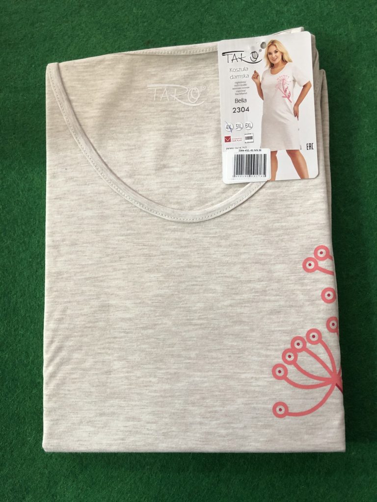 Košeľa má krátke rukávy, dĺžku po kolená a veľký polo-guľatý výstrih. Na prednej strane je vzor kvietky.