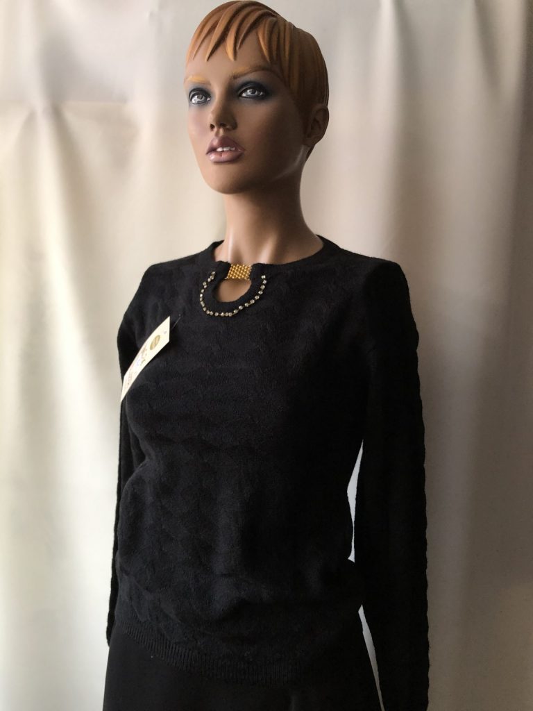 Dámsky pulóver so slzičkou a zlatými kamienkami.