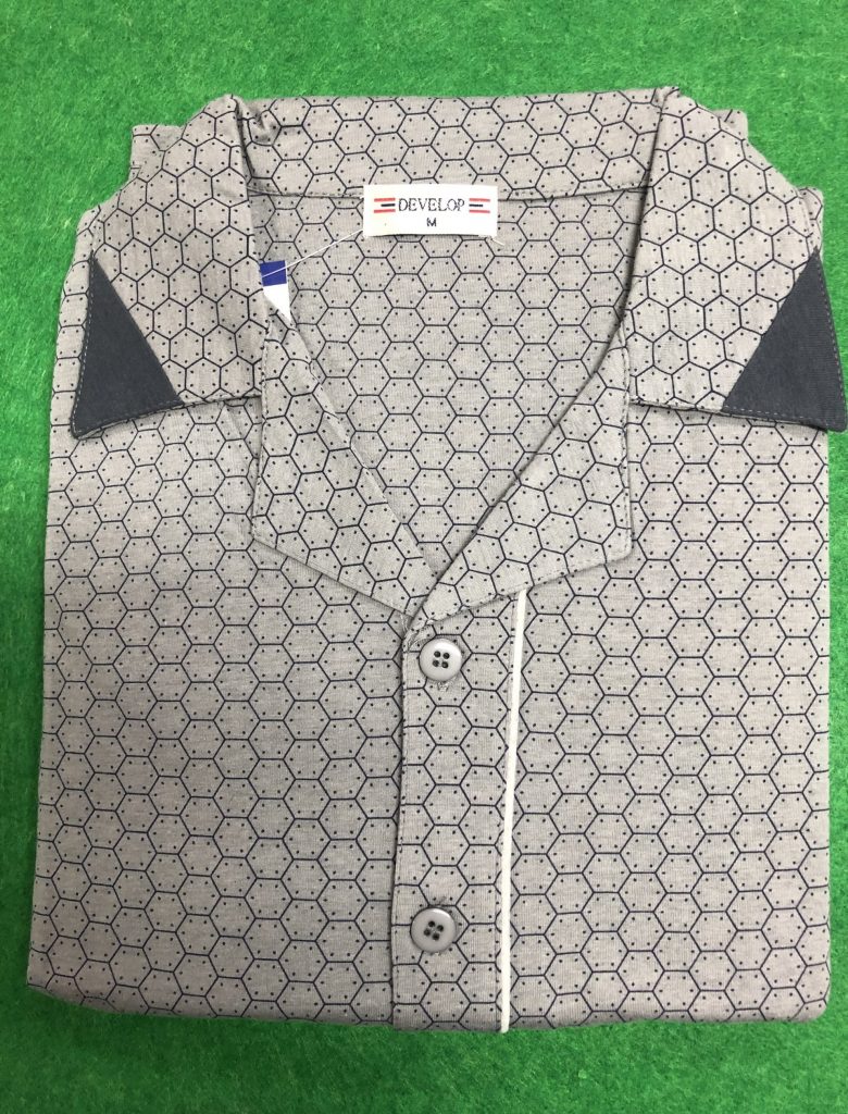 Pánske pyžamo s dlhým rukávom a dlhými nohavicami. Vrchný diel je celý na gombíky s dvoma vreckami