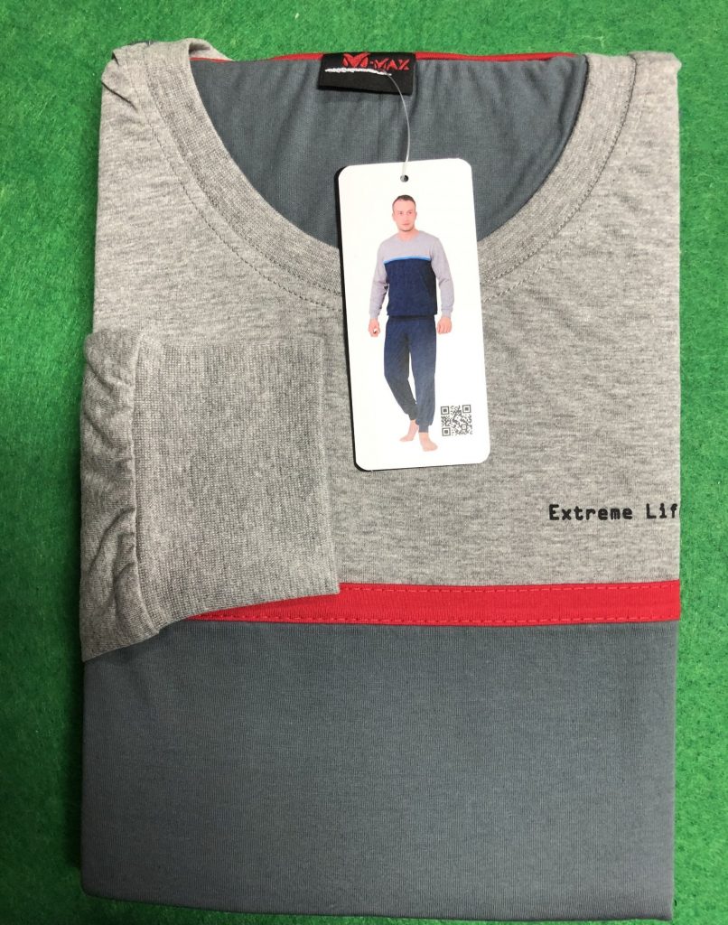 Pánske pyžamo s dlhým rukávom a dlhými nohavicami ukončené patentom.