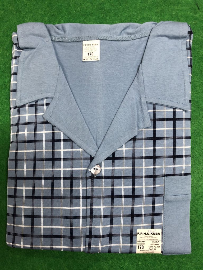 Pánske pyžamo s dlhým rukávom a dlhými nohavicami. Vrchný diel je celý na gombíky s vreckom.