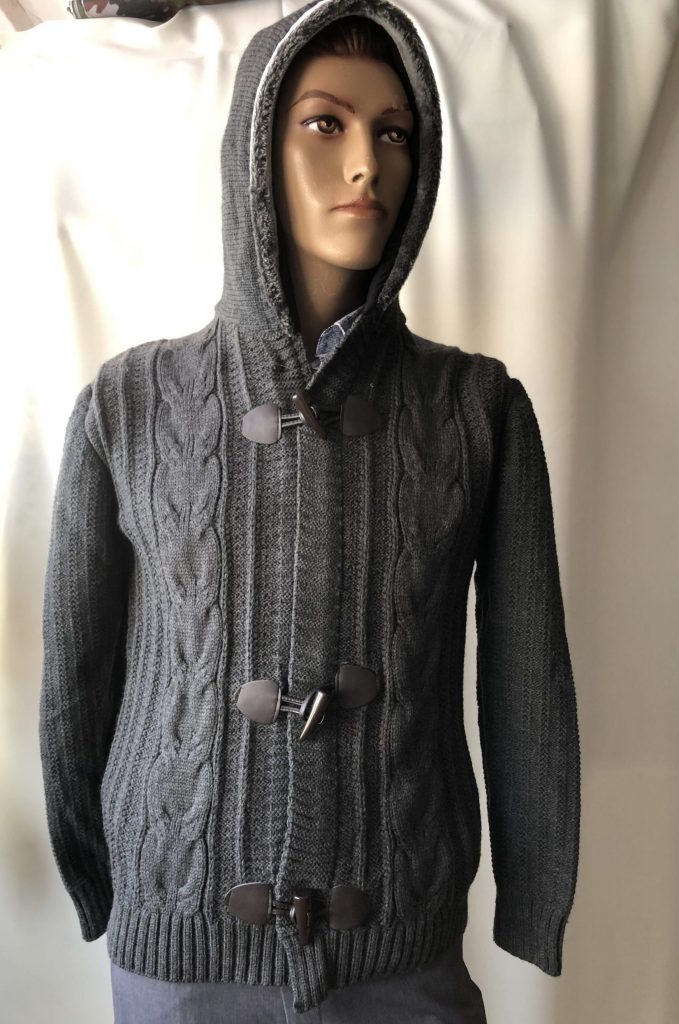 Pánsky sveter na zips a gombíky s krásnym pleteným vzorom. Kapucňa sa nedá odopnúť.